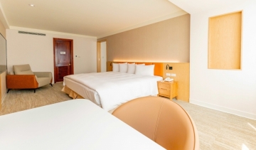 房型名称 定价 住宿人數 面积 床數 床規格 加床 精巧无窗双人房(1大床) $8,000 2 26平方米 1 150*195 cm 经典双人房(1大床) $9,000 2 23平方米 1 150*195 cm 经典双人房(2小床) $9,000 2 26平方米 2 105*195 cm 商务菁英房(1大床) $9,500 2 26平方米 1 180*195 cm 高级双人房(1大床) $10,000 2 26平方米 1 210*195 cm 可加1张单人床 高级双人房(2小床) $10,000 2 26平方米 2 105*195 cm 可加1张单人床 尊荣双人房(1大床) $13,000 2 33平方米 1 210*195 cm 高级三人房(3小床) $13,000 3 26平方米 3 105*195 cm 高級家庭房(2大床) $15,000 4 33平方米 2 160*195 cm 尊榮家庭房(2大床) $18,000 4 40平方米 2 180*195 cm 可加1张单人床 无障碍套房 $13,000 2 40平方米 1 150*195 cm 高級套房 $18,000 2 60平方米 1 210*195 cm 尊榮套房 $24,000 2 79平方米 1 210*195 cm 可加1张单人床 - 上述价格外加定价 10% 服务费