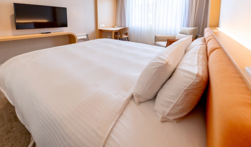 房型名称 定价 住宿人數 面积 床數 床規格 加床 精巧无窗双人房(1大床) $8,000 2 26平方米 1 150*195 cm 经典双人房(1大床) $9,000 2 23平方米 1 150*195 cm 经典双人房(2小床) $9,000 2 26平方米 2 105*195 cm 商务菁英房(1大床) $9,500 2 26平方米 1 180*195 cm 高级双人房(1大床) $10,000 2 26平方米 1 210*195 cm 可加1张单人床 高级双人房(2小床) $10,000 2 26平方米 2 105*195 cm 可加1张单人床 尊荣双人房(1大床) $13,000 2 33平方米 1 210*195 cm 高级三人房(3小床) $13,000 3 26平方米 3 105*195 cm 高級家庭房(2大床) $15,000 4 33平方米 2 160*195 cm 尊榮家庭房(2大床) $18,000 4 40平方米 2 180*195 cm 可加1张单人床 无障碍套房 $13,000 2 40平方米 1 150*195 cm 高級套房 $18,000 2 60平方米 1 210*195 cm 尊榮套房 $24,000 2 79平方米 1 210*195 cm 可加1张单人床 - 上述价格外加定价 10% 服务费