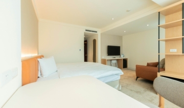 房型名称 定价 住宿人數 面积 床數 床規格 加床 精巧无窗双人房(1大床) $8,000 2 26平方米 1 150*195 cm 经典双人房(1大床) $9,000 2 23平方米 1 150*195 cm 经典双人房(2小床) $9,000 2 26平方米 2 105*195 cm 商务菁英房(1大床) $9,500 2 26平方米 1 180*195 cm 高级双人房(1大床) $10,000 2 26平方米 1 210*195 cm 可加1张单人床 高级双人房(2小床) $10,000 2 26平方米 2 105*195 cm 可加1张单人床 尊荣双人房(1大床) $13,000 2 33平方米 1 210*195 cm 高级三人房(3小床) $13,000 3 26平方米 3 105*195 cm 高級家庭房(2大床) $15,000 4 33平方米 2 160*195 cm 尊榮家庭房(2大床) $18,000 4 40平方米 2 180*195 cm 可加1张单人床 无障碍套房 $13,000 2 40平方米 1 150*195 cm 高級套房 $18,000 2 60平方米 1 210*195 cm 尊榮套房 $24,000 2 79平方米 1 210*195 cm 可加1张单人床 - 上述价格外加定价 10% 服务费