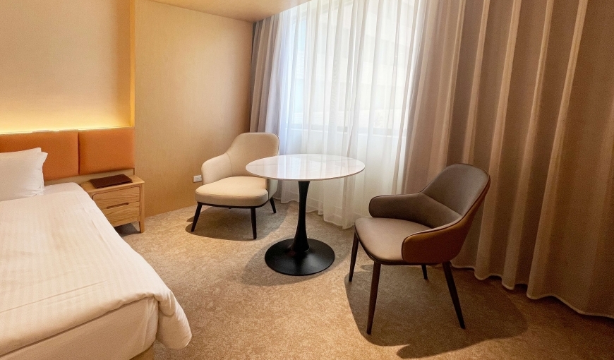 Room Type Room Rate Occupancy Room Area Bed(s) Bed Type Extra Bed Smart Room (No Window) $8,000 2 26 m² 1 150*195 cm Classic Twin Room $9,000 2 23 m² 1 150*195 cm Classic Twin Room $9,000 2 26 m² 2 105*195 cm Business Elite Room $9,500 2 26 m² 1 180*195 cm Premium Room $10,000 2 26 m² 1 210*195 cm One extra single bed available Premium Twin Room $10,000 2 26 m² 2 105*195 cm One extra single bed available Grand Room $13,000 2 33 m² 1 210*195 cm Premium Triple Room $13,000 3 26 m² 3 105*195 cm Premium Family Room $15,000 4 33 m² 2 160*195 cm Grand Family Room $18,000 4 40 m² 2 180*195 cm One extra single bed available Universal Suite $13,000 2 40 m² 1 150*195 cm Premium Suite $18,000 2 60 m² 1 210*195 cm Grand Suite $24,000 2 79 m² 1 210*195 cm One extra single bed available - An additional 10% service charge shall be incurred for the price mentioned above